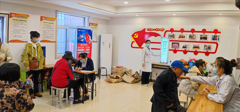 为推进党史学习教育走深走实,扎实开展“我为群众办实事”实践活动,11月19日上午小黄书 党委组织党员师生到十笏园社区开展“双报到”社区义诊活动。