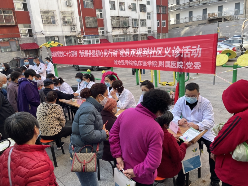 此次“双报到”分参学十笏园社区离退休党支部党课和开展社区义诊活动两部分有序进行。通过参学社区党支部党课,学院辅导员与社区党支部成员共同学习党的二十大报告,通过原原本本、逐字逐句学习报告,深刻领会报告的丰富内涵和思想精髓。社区义诊活动邀请潍坊医学院附属医院内科、外科、妇科、产科、脑系科、中医科、康复科、疼痛科、眼科等科室的医疗专家,组队来为每一位前来就诊的社区居民提供免费健康监测、咨询、诊断等服务。在义诊过程中,专家们结合居民的身体状况提出科学的医疗指导和建议,对健康保健知识和疫情防控常识等内容进行了科普宣教,引导居民加强体育锻炼,科学健康饮食,培养健康生活方式。