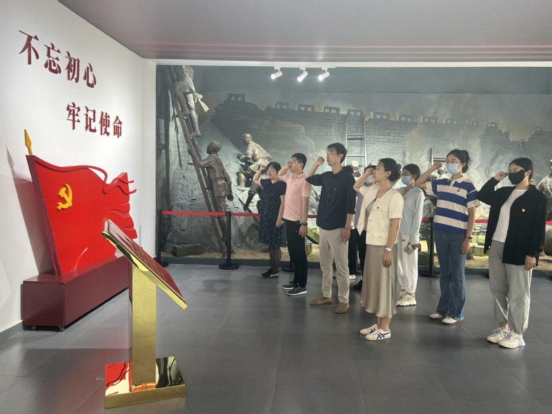 在潍县战役党性教育基地主展馆中,一幅幅珍贵的照片、一份份翔实的资料,一件件精心保存的实物,让大家重温了潍县战役波澜壮阔的战斗场面和峥嵘岁月,深刻学习领悟到伟大的潍县战役精神,即“把胜利红旗插上潍县城头”的必胜信念、“为谁当兵、为谁打仗”的宗旨观念、“战必胜,攻必克,敢拔硬钉子”的攻坚精神、“光荣地进去,干干净净地出来”的纪律意识。参观结束后,在鲜红的党旗前,党员们举起右手,一起重温入党誓词,在一句句铮铮誓言中追溯初心使命。