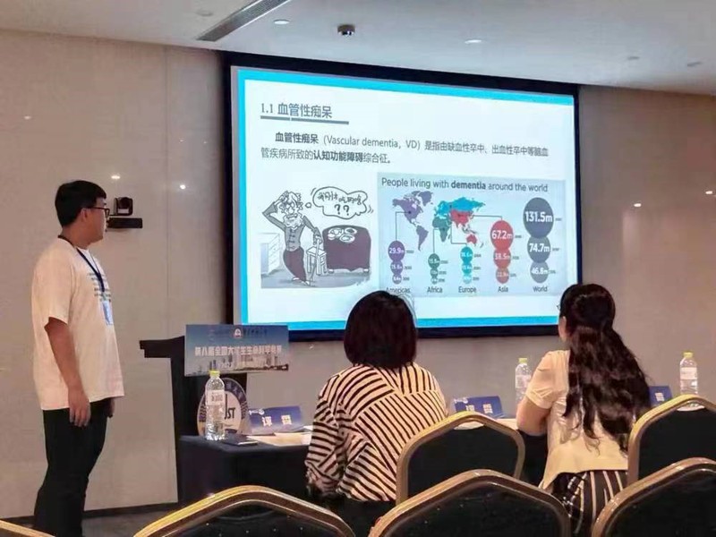 参赛项目《Apelin受体及其同源二聚体对血管性痴呆的作用及机制研究》以血管性痴呆这一常见的脑血管疾病作为研究背景,探究Apelin受体及其同源二聚体在其中发挥的作用。本次汇报结合了本课题组近年内多组研究成果,采用缺血性脑卒中、缺血再灌注两种大鼠模型和三种细胞模型,研究Apelin受体相关的细胞行为、分子机制等在疾病背景下的作用,更好地解释血管性痴呆的病理生理机制及Apelin同源二聚体的神经保护机制;实验中还创新性的采用了BiFC-BRET方法检测Apelin同源二聚体的G蛋白信号通路,此方法可以避免单体的干扰。以上研究成果已发表于Drug Discovery Today、Biochimica et biophysica acta、Cellular Signalling等优秀国际期刊。