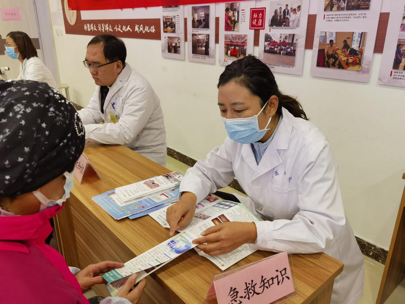 社区义诊活动邀请潍坊医学院附属医院浮烟山院区内科、外科、脑系科、眼科、急诊等科室的医疗专家,组队为每一位前来就诊的社区居民提供免费健康监测、咨询、诊断等服务。在义诊过程中,专家们结合居民的身体状况提出科学的医疗指导和建议,对健康保健和安全用药知识等内容进行了科普宣教,引导居民加强体育锻炼,科学健康饮食,养成良好生活习惯。