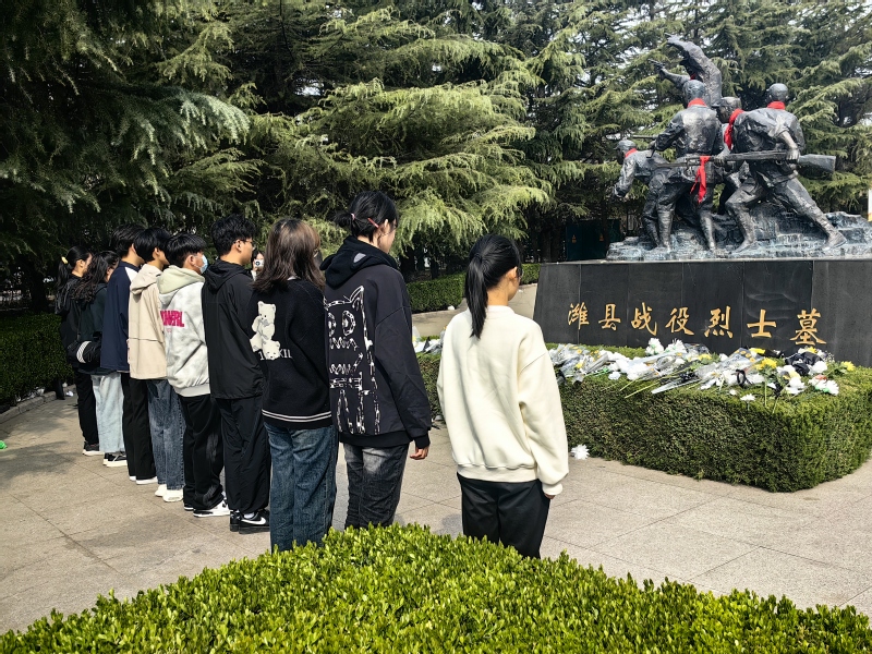同学们来到潍坊市革命烈士陵园开展祭扫活动,在巍峨的革命烈士纪念碑前整齐列队、庄严肃立。学生代表缓步上前,向革命先烈敬献花圈。同学们神情凝重,垂首默哀三分钟,深切缅怀为民族独立和人民解放事业英勇献身的革命先烈。医知学社成员怀着崇敬之心走进潍县西方侨民集中营旧址博物馆。在讲解员的引导下,同学们深入了解乐道院不同时期历史故事,一件件实物、一段段影像让同学们深刻感受到战争年代的苦难与和平的来之不易。
