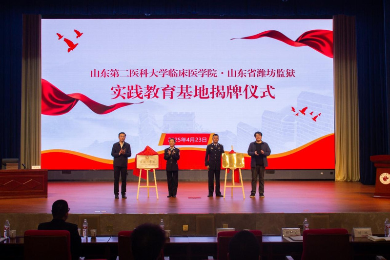 座谈会上,双方围绕共青团组织建设、活动创新及青年服务等内容展开深度交流,重点探讨2025年度共青团结对共建计划,双方将以资源共享、课题共研等方式,深化法治教育实践内涵。会后,双方共同为“实践教育基地”揭牌,作为学院师生参与法治教育实践的重要平台,基地将以规范化、常态化活动为抓手,助力学生夯实法律知识根基,强化社会责任感。潍坊监狱团委副书记周光辉作题为《在“法”的陪伴下健康成长》的专题讲座。周光辉从“法的内涵”“法与生活”等维度切入,结合校园欺凌、青少年犯罪等典型案例,剖析违法行为的危害及预防措施,呼吁同学们“以书修身、以法立行”,提高自我保护能力,增强法治观念与素养。