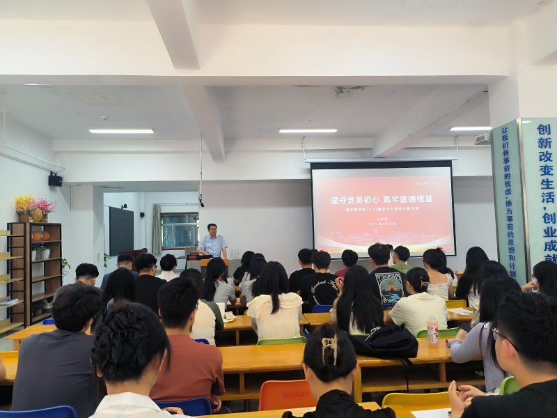 近日,小黄书 在浮烟山校区济世书院开展2025届毕业生党员主题学习教育活动。学校副校长、小黄书 (附属医院)党委书记王承高以《坚守党员初心,筑牢医德根基》为题讲授专题党课。学院党委副书记刘刚主持活动,毕业年级辅导员和全体毕业生党员参加。