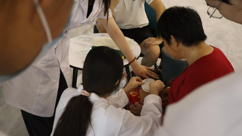 为切实关注社区老年群体的健康状况,在坊子区测绘园卫生服务中心和奎文中心医院,团队成员跟随家庭医生开展入户随访服务,耐心记录老人的健康诉求,协助补充完善居民的既往病史、用药情况及近期健康指标,针对高血压、糖尿病等慢性疾病患者,给予个性化的饮食、运动及用药指导。从药材配伍到剂型调配,认真学习中医贴剂的制作方法,在带教医师的指导下为有颈肩腰腿痛、脾胃虚寒等问题的社区居民贴上亲手制作的中医贴剂,让居民在家门口就能体验到中医特色疗法的魅力。