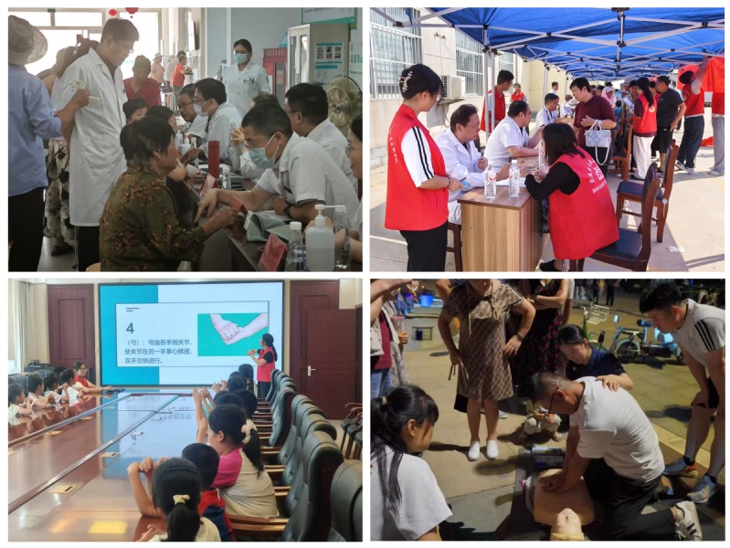 科普宣教,绘就健康长卷。队员们向居民普及《卫生法》相关知识,通过发放《科学用药指南》和《献血知识》手册,提升群众健康素养及法律意识;开展“心跳接力”主题健康知识宣传,模拟示范海姆利克急救法、心肺复苏(CPR)、AED使用等急救技能,开展慢性病及夏季传染病防控科普,让健康知识真正走进群众生活。