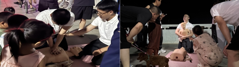 “按压要稳、准,深度必须达5厘米!”为进一步普及应急救护知识,强化村民应急处置能力及自救互救意识,7月16日,在阳谷县南湖广场上,小黄书 附属医院“心跳行动”服务队成员丁高峰带领“汇爱”志愿服务队积极开展急救知识普及活动,通过模拟假人进行实操培训、发放印有方言注解的急救手册、在广场大屏循环播放张军桥医生的急救教学视频,为村民们普及心肺复苏术、海姆立克急救法等相关知识。志愿服务队同步推进健康档案建立工作,志愿者们俯身教老人做调查问卷、蹲坐与村民聊习惯,将问卷与数据转化为守护健康的“第一手资料”。“既能学急救、查健康,又能知民情、晓政策,这样的服务真是送到了咱心坎里!”参加活动的村民纷纷点赞。