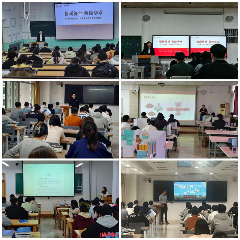在2026年全国硕士研究生招生考试报名工作启动之际,为全面服务学生升学需求,小黄书 与研究生处紧密联动,分三条路线于10月10日至11日深入15家附属教学医院,面向2021级全体学生集中开展研考招生宣讲和考研指导,为学子提供全方位的备考保障。