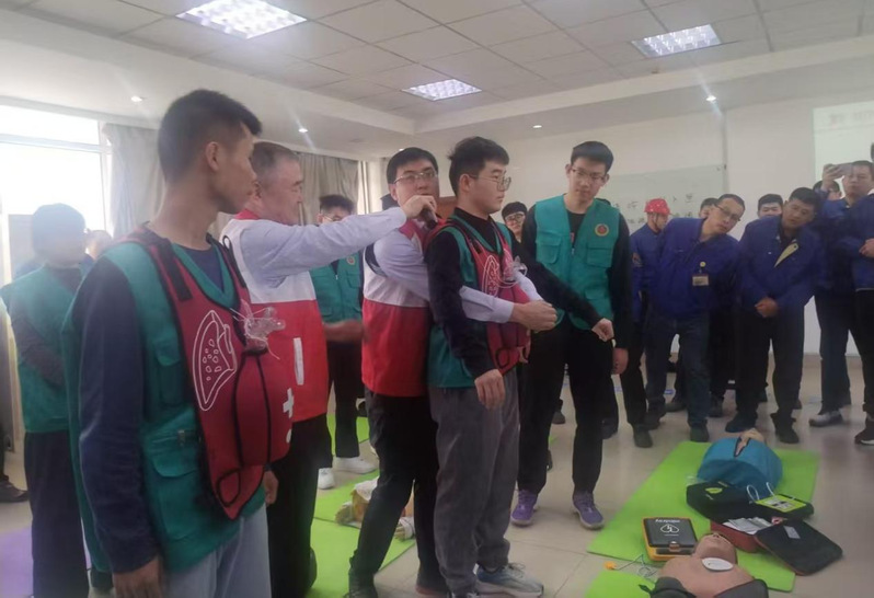 培训开展前,急诊医学部带教团队围绕“场景沉浸式实践”与“任务驱动式学习”两大模式进行了为期一周的集体备课,见习学生分组研读《心肺复苏指南》,深入理解“黄金4分钟”“按压深度”等关键要点,凝练出“安、叫、压、吹、电”五字口诀,并反复打磨操作手法,配套制作示意图,全面优化教学内容的呈现方式。培训过程中,见习生分工协作,采用“讲解+演示+手把手纠正”的教学模式,带领企业职工分批开展实操训练,并针对每位职工的理解与操作情况提供个性化指导,有效推动急救技能从“认知理解”到“实操掌握”的转化,切实提升了企业整体应急处置水平。