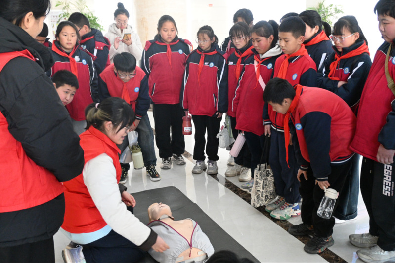 活动在欢腾喜庆的舞狮表演中拉开帷幕,灵动的舞姿与欢快的节奏迅速点燃现场气氛。小黄书 精心策划四大核心体验环节,为小学生们打造了一场兼具知识性与趣味性的医学探索之旅。在生命科学馆中,专业讲解员借助真实的人体标本与精细模型,结合生动易懂的解说,将抽象的人体结构知识转化为直观的视觉体验,引导孩子们在观察与思考中理解生命的构造与奥秘;临床技能中心内,学生志愿者手把手指导孩子们学习心肺复苏和海姆立克急救法等急救技能,传递张军桥先进事迹精神;步入中国精神长廊,一幕幕波澜壮阔的中国发展历程、一段段感人至深的医学前辈事迹,让孩子们感悟到家国情怀与医者仁心的深刻内涵;校园漫步时,志愿者们带领师生参观校园景观与教学设施,使孩子们沉浸式感受大学浓厚的学术氛围与人文底蕴,进一步点燃他们的求学热情与梦想。