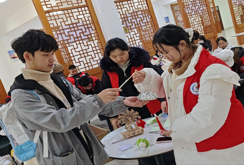 活动以“亲手制作、真诚赠礼”为主线,鼓励同学们将创意与祝福转化为送给孩子们的独特礼物,在互动中搭建起青春与童真之间的爱心桥梁。同学们纷纷施展巧思,彩纸折叠成千纸鹤、黏土捏出可爱玩偶、毛线编织成温暖围巾与帽子、毛毡裁剪为精美花束、手绘贺卡写下真挚寄语……每一份礼物都承载着心意与温度。捐赠现场,各类手作礼物很快装满多个大箱。志愿者们细心整理、妥善打包,确保每一份承载着祝福的礼物,都能完好地送达潍坊市盲童学校孩子们的手中。