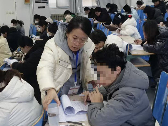 危急时刻,外科学教研室吴长青老师迅速上前扶住考生,轻声安抚其休息,并示意孙慧超老师维护考场秩序,确保其他考生不受影响。外科学教研室副主任姚兴国随即上前查看情况。经询问,该考生因未进早餐而出现头晕、乏力等症状,确为低血糖反应。周围同学也纷纷伸出援手,递上随身携带的糖果。小小的举动传递出同窗之间的温暖,也让紧张的考场氛围悄然融化。随后,吴长青老师赶往便利店购买面包、巧克力与温水,孙慧超与姚兴国老师则继续维持考试秩序。在师生共同照料下,考生体力逐渐恢复,最终重返座位坚持完成考试,其意志力令人动容。